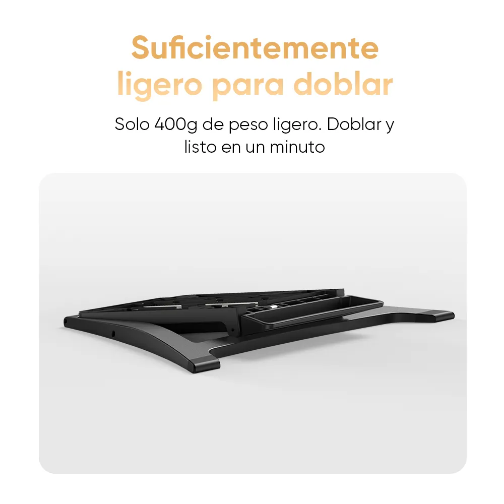 El soporte pesa tan solo 400g, lo mismo que una manzana. Es pequeño y ocupa poco espacio en tu escritorio. ¡Pliégalo y guárdalo en tu bolso como quieras!