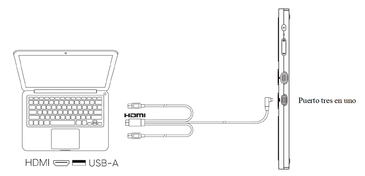 3. Conecte el cable USB-A negro y el cable HDMI a los puertos correspondientes del ordenador respectivamente;