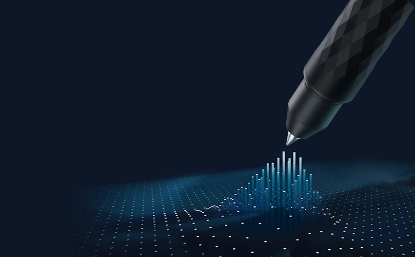 Sinta o prazer da escrita com uma caneta inteligente que captura a textura do papel.