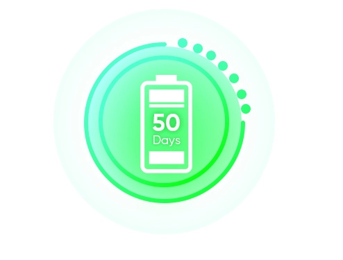 14 horas de utilização, 50 dias em modo de espera.