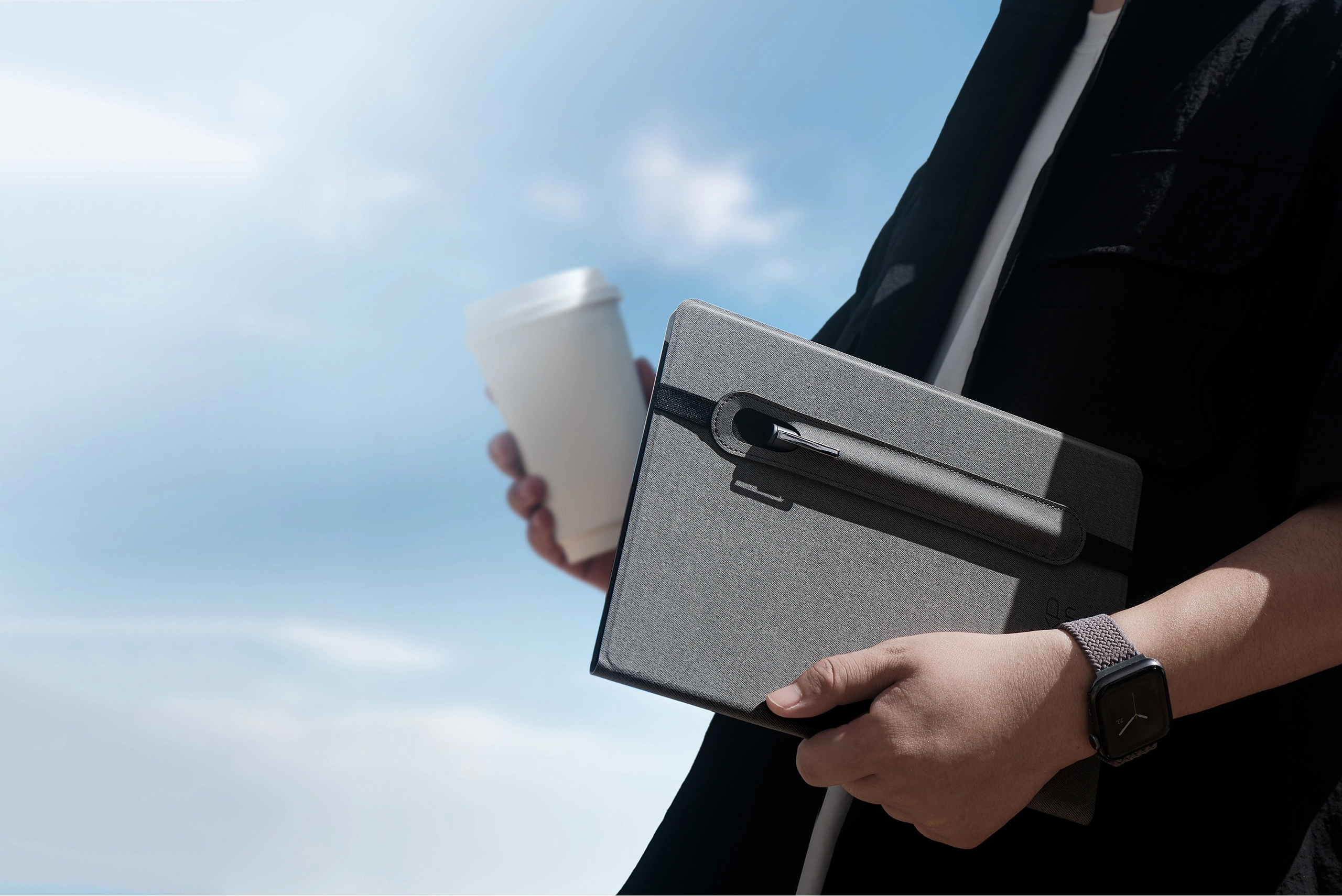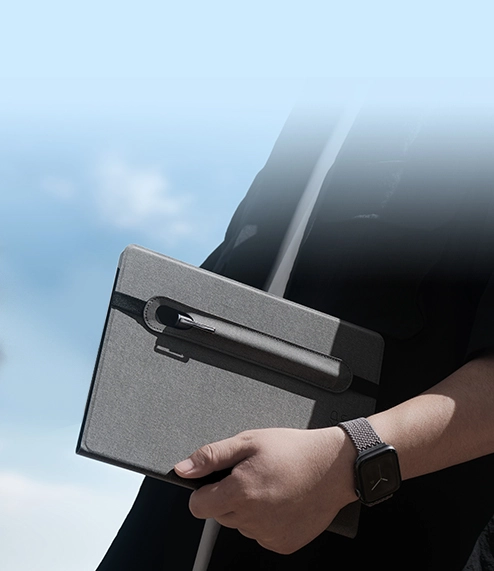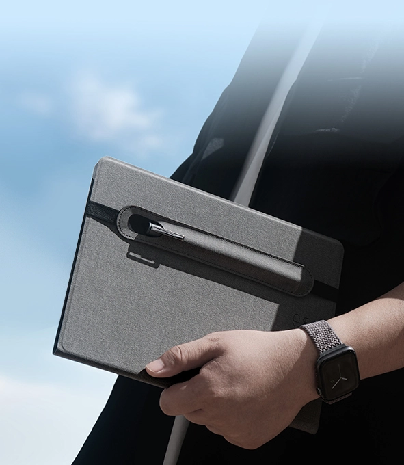 Confeccionado em couro vegano leve e resistente a arranhões, o Note Plus oferece uma sensação refinada e segura na mão. O acabamento cinza elegante adiciona um toque de estilo discreto que se adapta a qualquer ambiente.