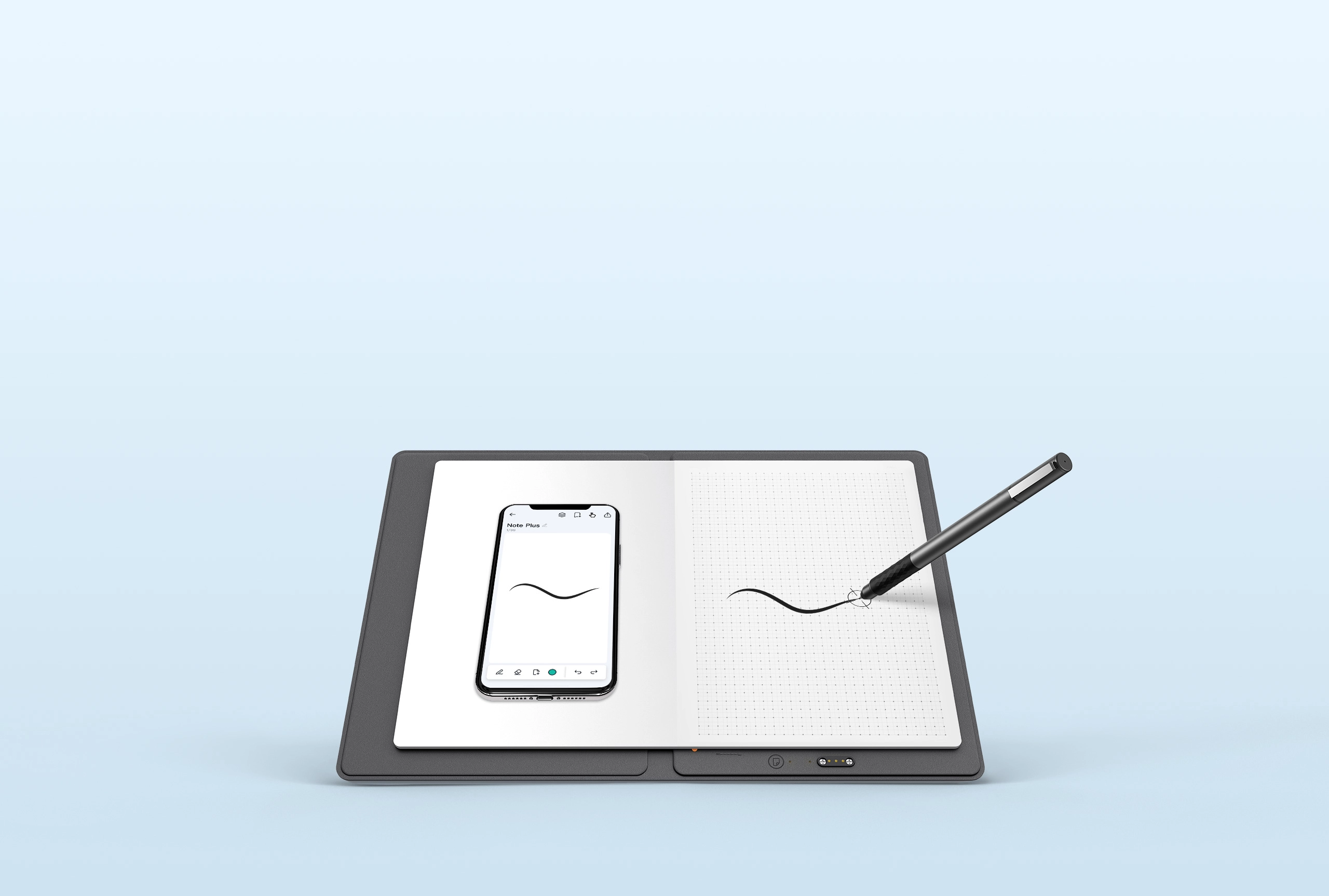 Com o Bluetooth® 5.3 atualizado, o Note Plus conecta-se ao seu smartphone com mais rapidez e confiabilidade. Após emparelhado, ele se reconecta automaticamente quando você abre o caderno e inicia o aplicativo.