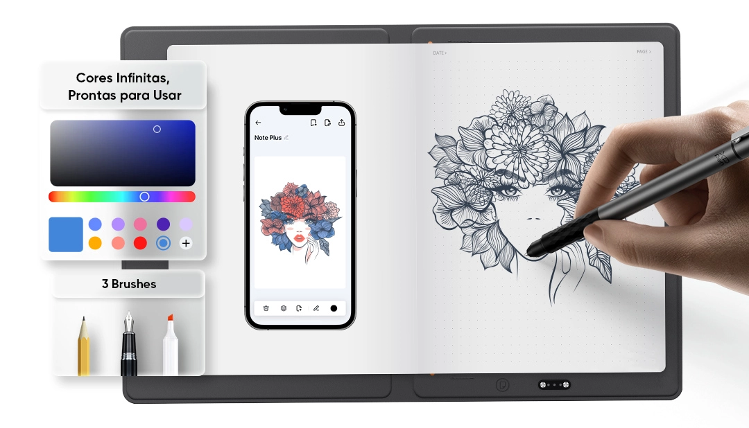Unindo o papel ao digital, o Note Plus faz as ideias fluírem — com clareza, eficiência e sem limites.