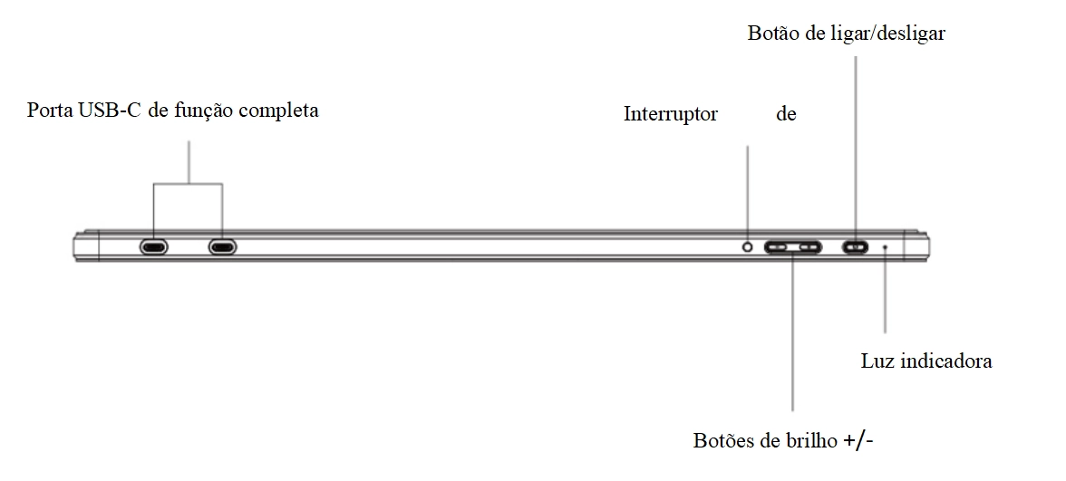 Observe que, devido às limitações da potência de saída do computador, o produto não pode atingir o brilho máximo ao usar a conexão direta do cabo único USB-C a USB-C, também pode aparecer cintilação na tela ou tela preta, neste momento, use um segundo cabo USB-C para conectar a tela digitalizadora ao adaptador de energia para a fonte de alimentação.