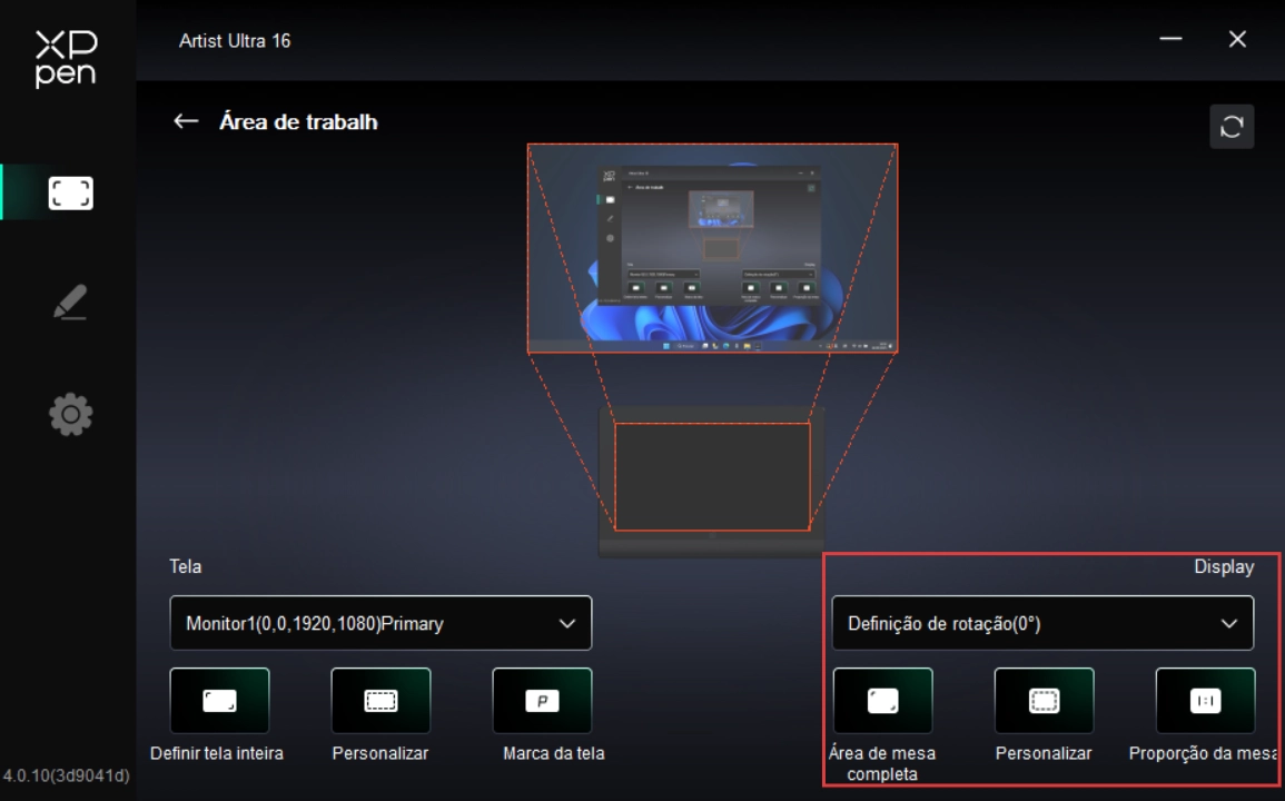 Ao clicar no ícone no lado esquerdo do driver, você pode alternar a função do driver para ajudar a definir as configurações relacionadas à tela digitalizadora, incluindo: