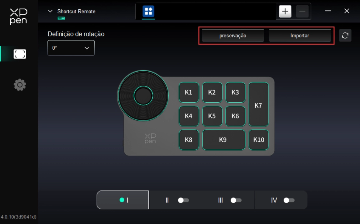Observação: use as funções "Importar" e "Armazenar" com uma conexão com fio. As configurações de "Importar" e "Armazenar" não incluem a função de rotação e são válidas somente no mesmo sistema.