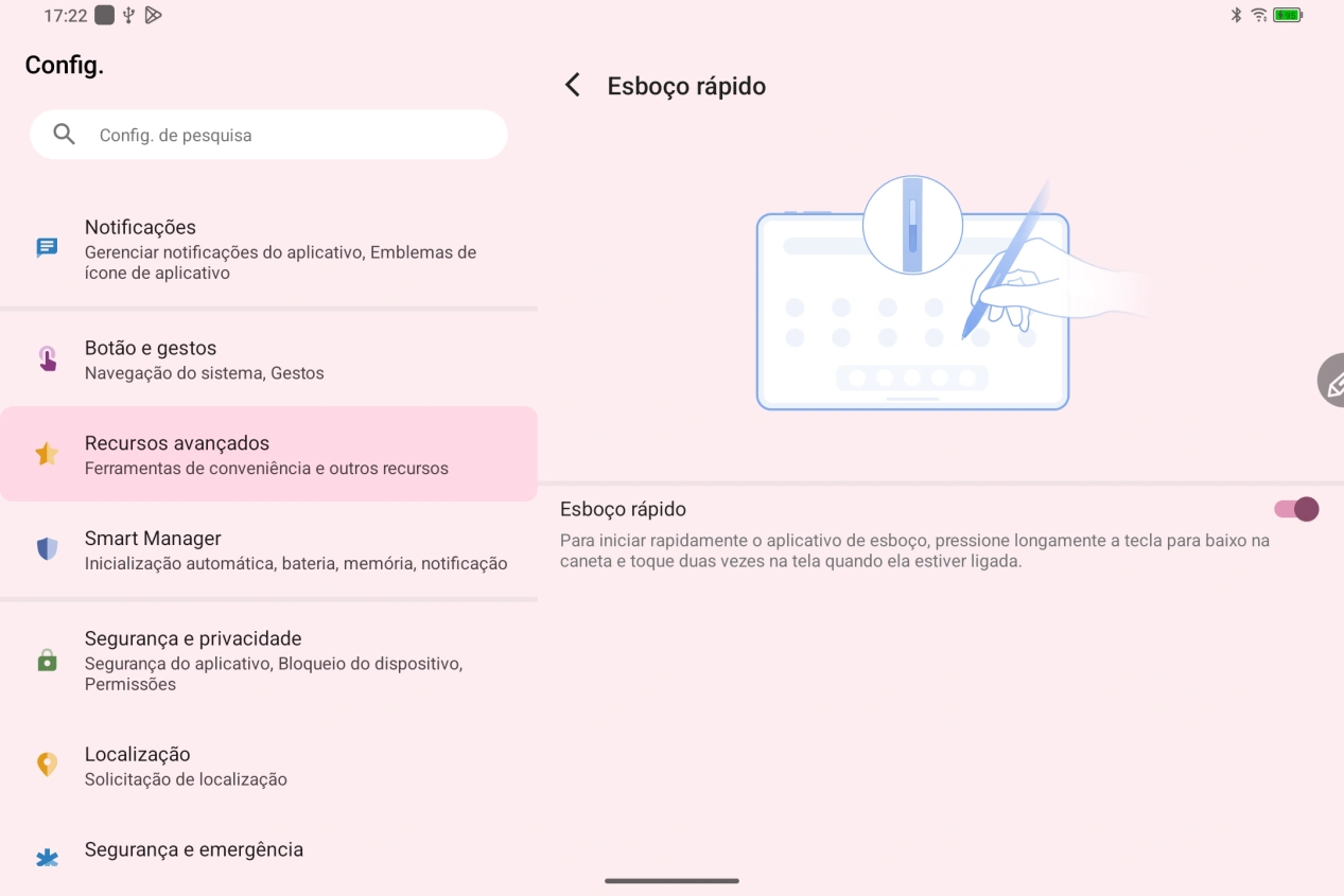 3. Vá para Configurações - Recursos avançados - Esboço rápido