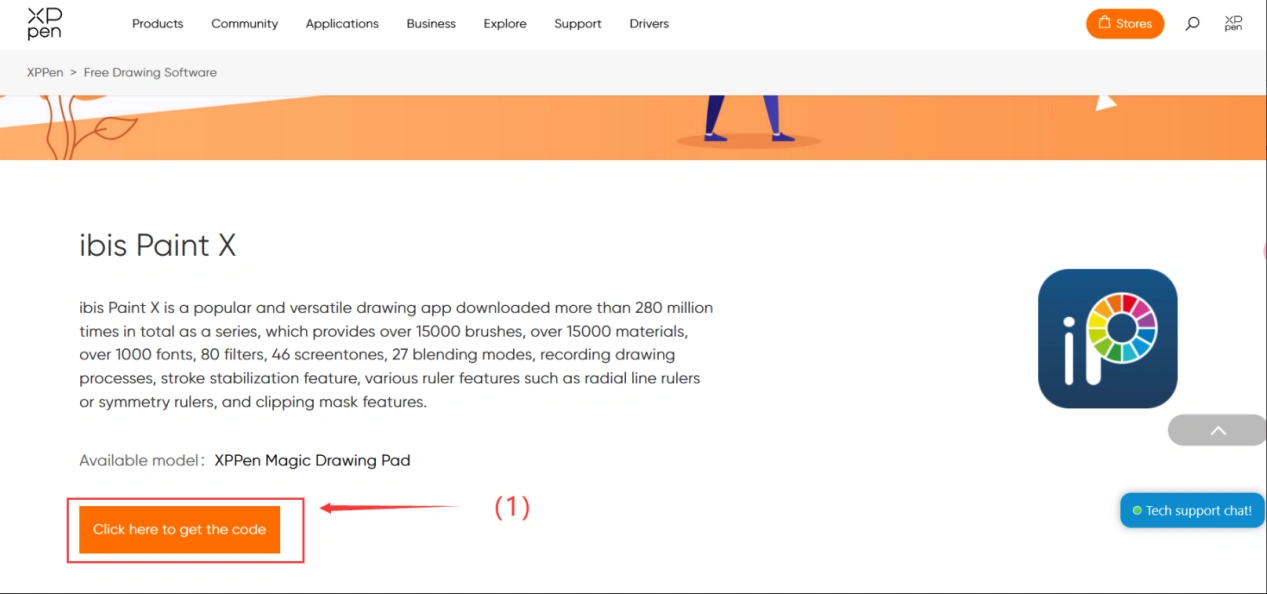 1. Acesse https://www.xp-pen.com/free-drawing-software.html, selecione ibis Paint X e clique no botão abaixo