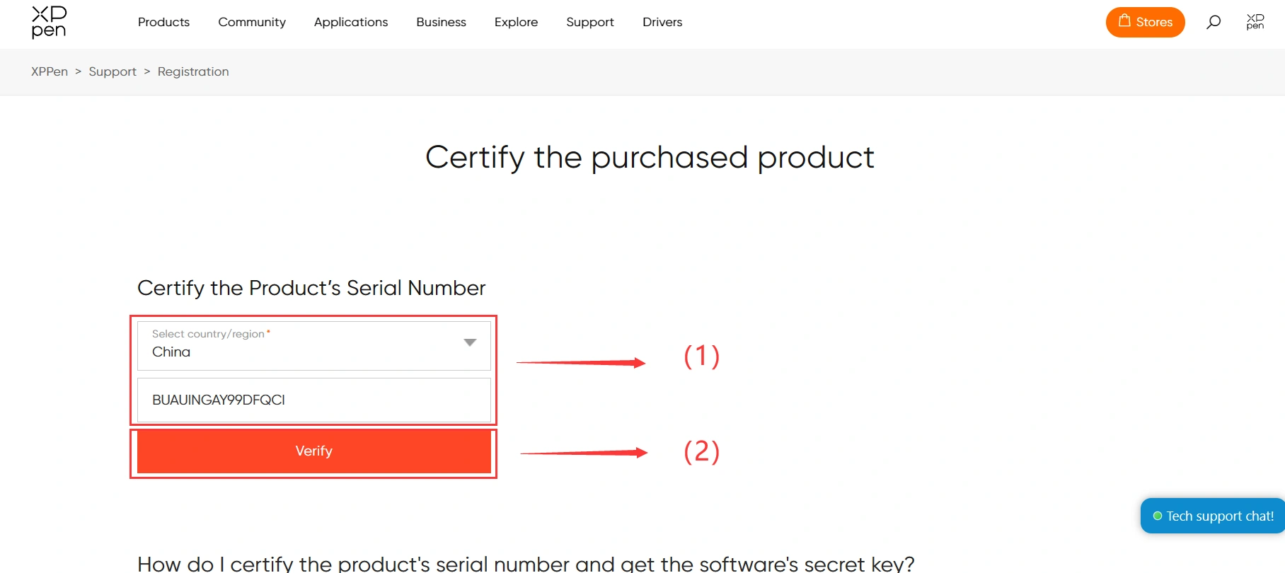 2. Selecione seu país ou região e preencha o número SN do seu tablet (o número SN pode ser visualizado em Configurações-Sobre o tablet-Status) e clique no botão abaixo para receber o código de resgate