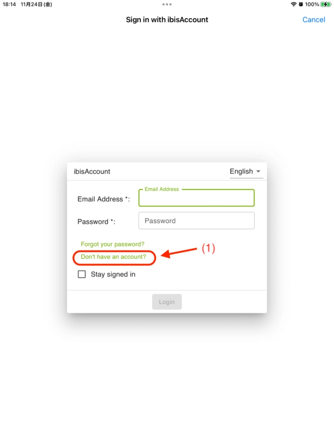 2. Você precisa fazer login com ibisAccount. Se você não tiver uma conta, toque no link "Não tem uma conta?" .