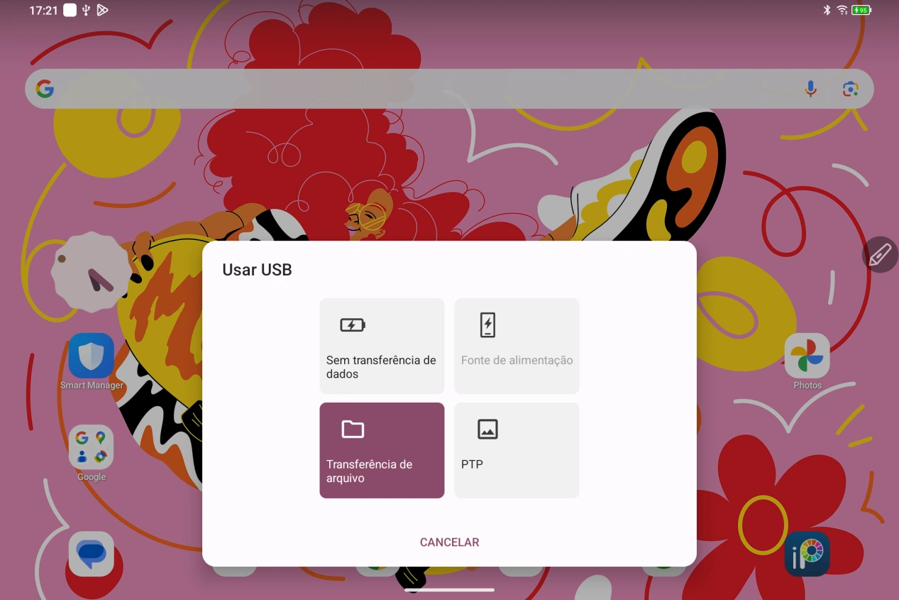 Etapa 2: Uma janela pop-up aparecerá no tablet, solicitando que o usuário selecione o método de uso (transferir arquivos ou transferir fotos)