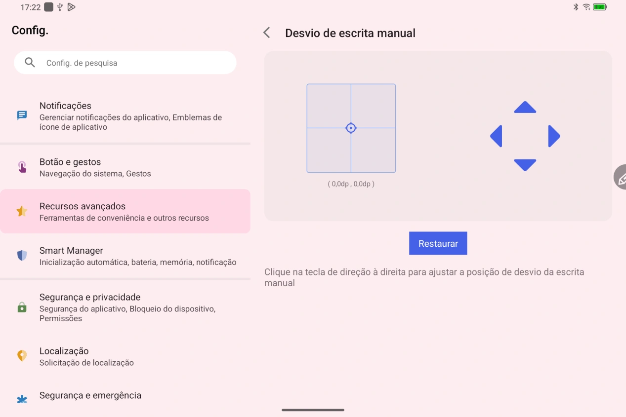 1. Abra Configurações - Recursos avançados - Calibração da caneta