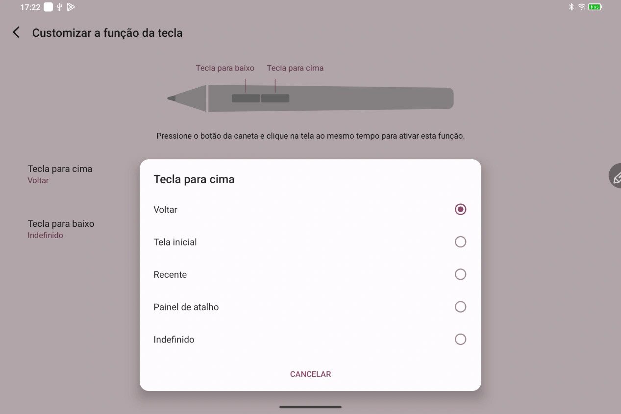 1. Abra Configurações - Recursos avançados - Caneta - Personalizar funções das teclas