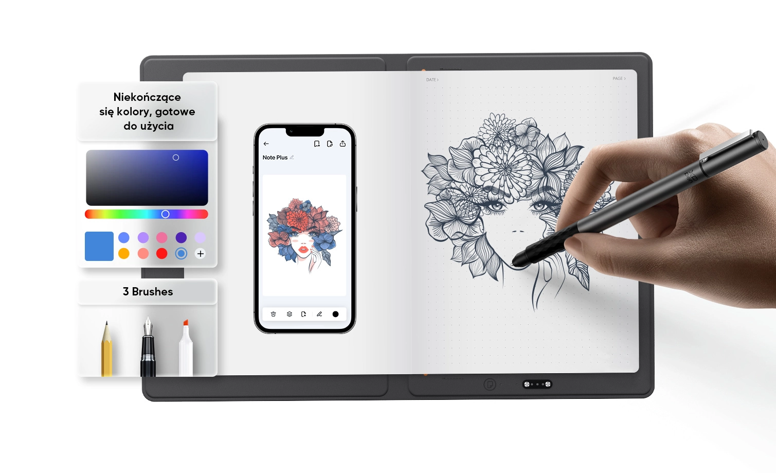Łącząc papier z technologią cyfrową, Note Plus pomaga płynąć myślom — wyraźnie, sprawnie i bez ograniczeń.