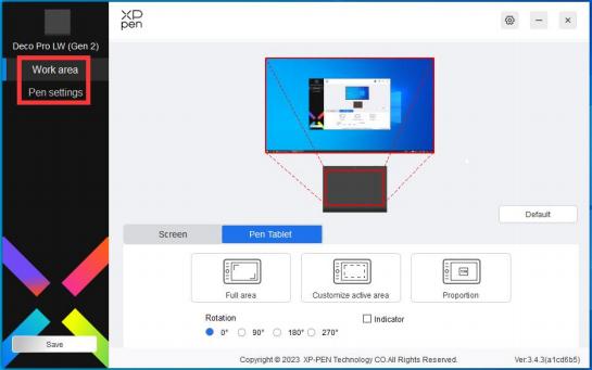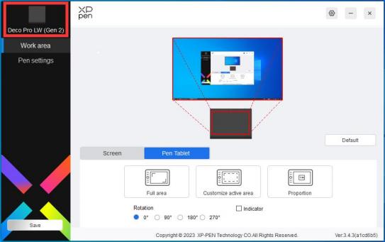 g) Po zakończeniu konfiguracji ustawień wróć do interfejsu rysowania, aby używać swojego tabletu graficznego w celu zajęcia się pracą twórczą. Aplikacja domyślnie mapuje obszar pracy na środkowy obszar tabletu graficznego.
