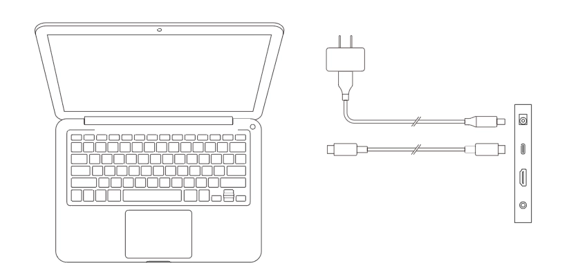The fully functional USB-C port supports the simultaneous transmission of both video and data signals. Therefore, you only need to connect the USB-C to USB-C cable to the USB-C port on your computer and the drawing display.