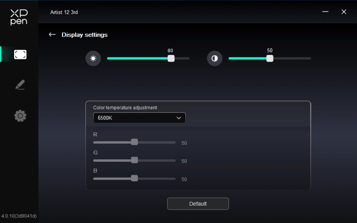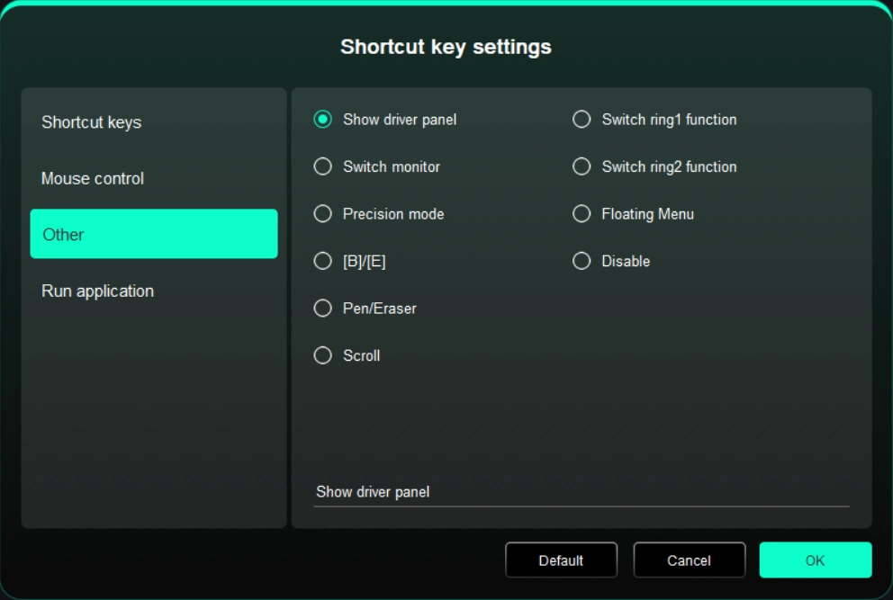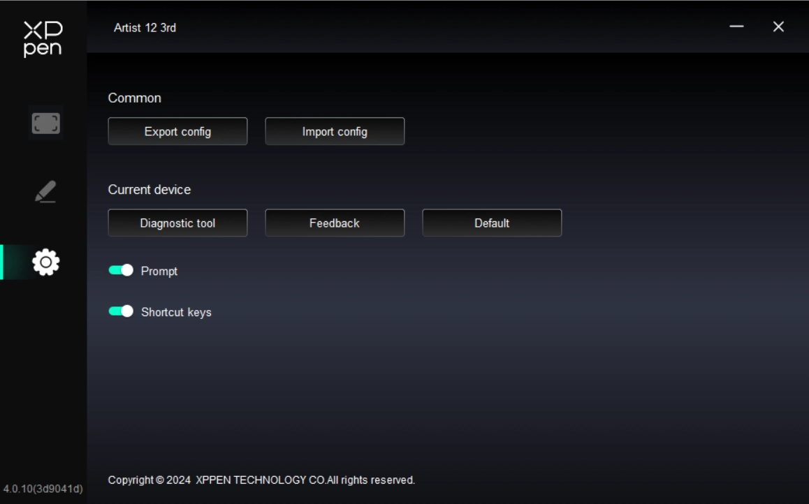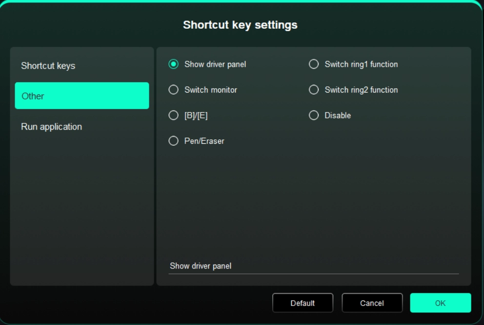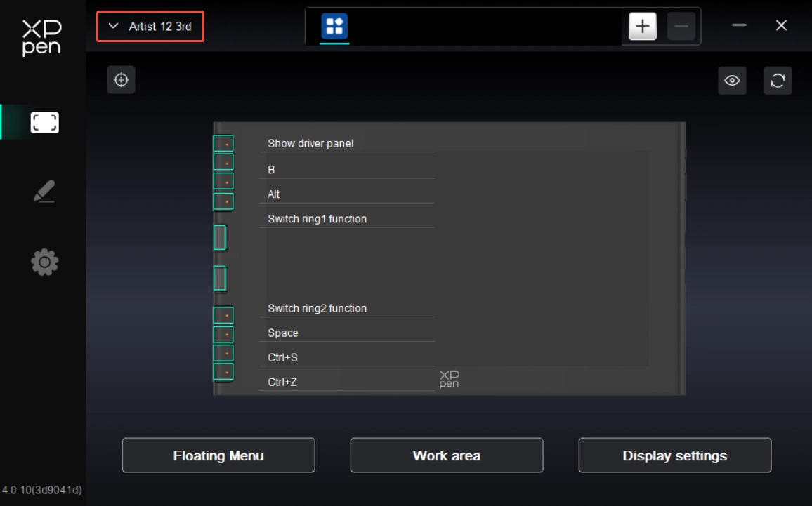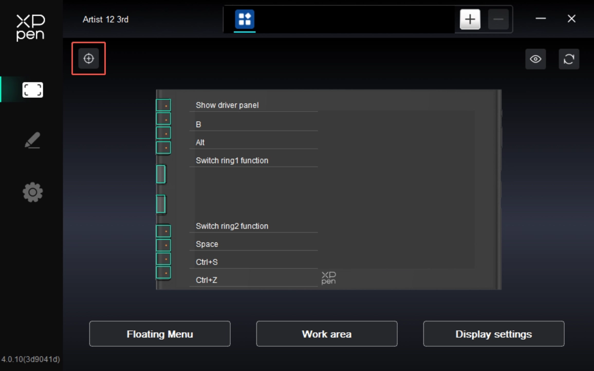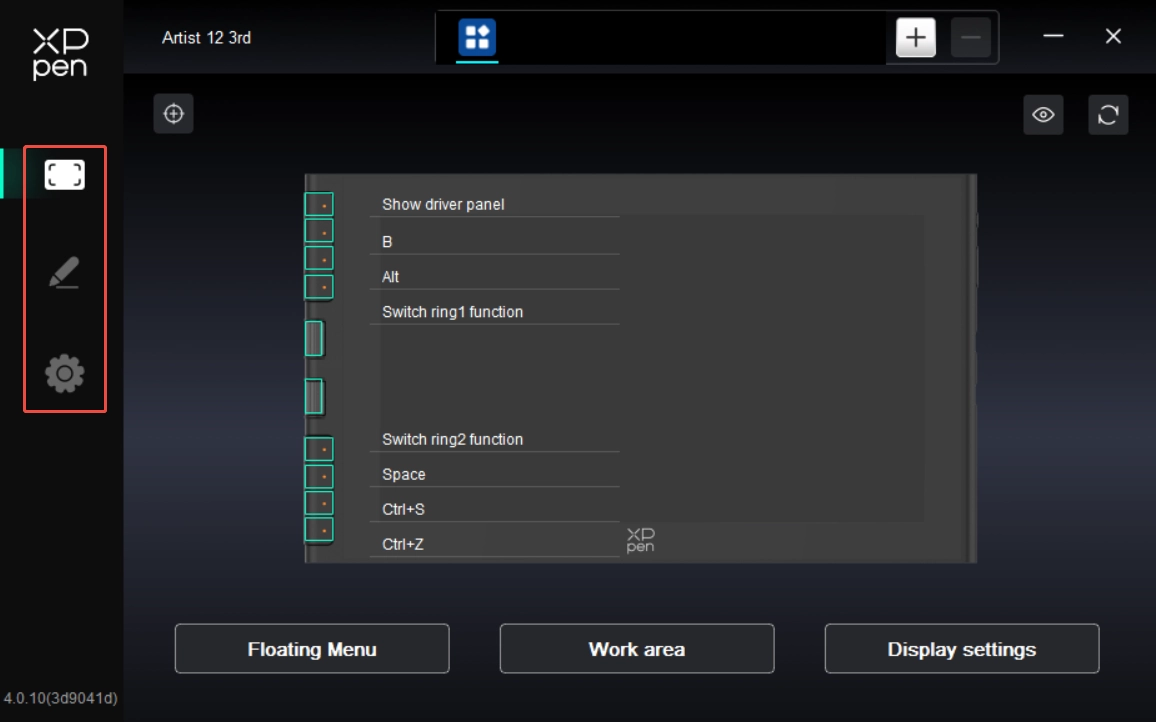 By clicking the icon on the left side of the driver, you can switch the driver features to set the relevant settings of the drawing display, including: