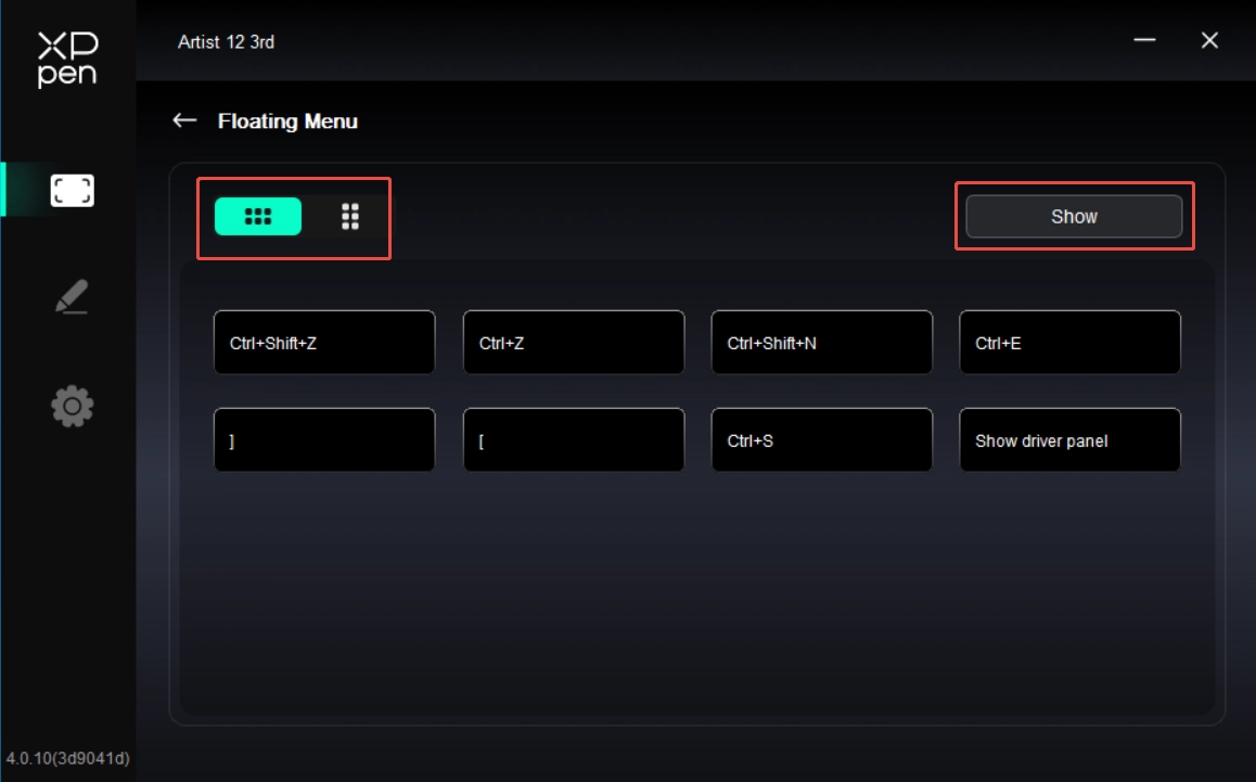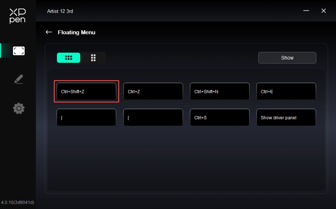 The floating menu can display floating shortcut keys on the drawing display or computer monitor. You can set common operations on the floating menu. Then tap the button with your stylus or mouse to perform the set operation.