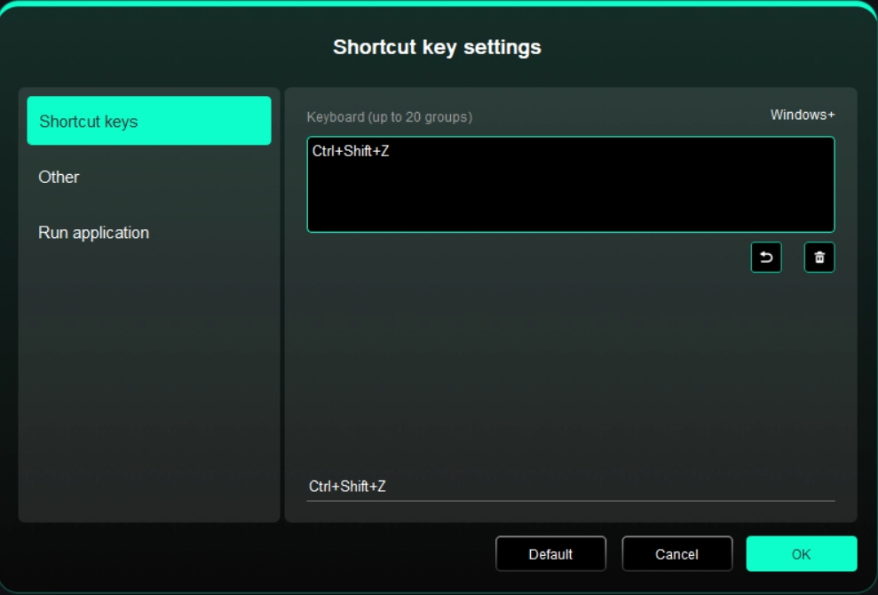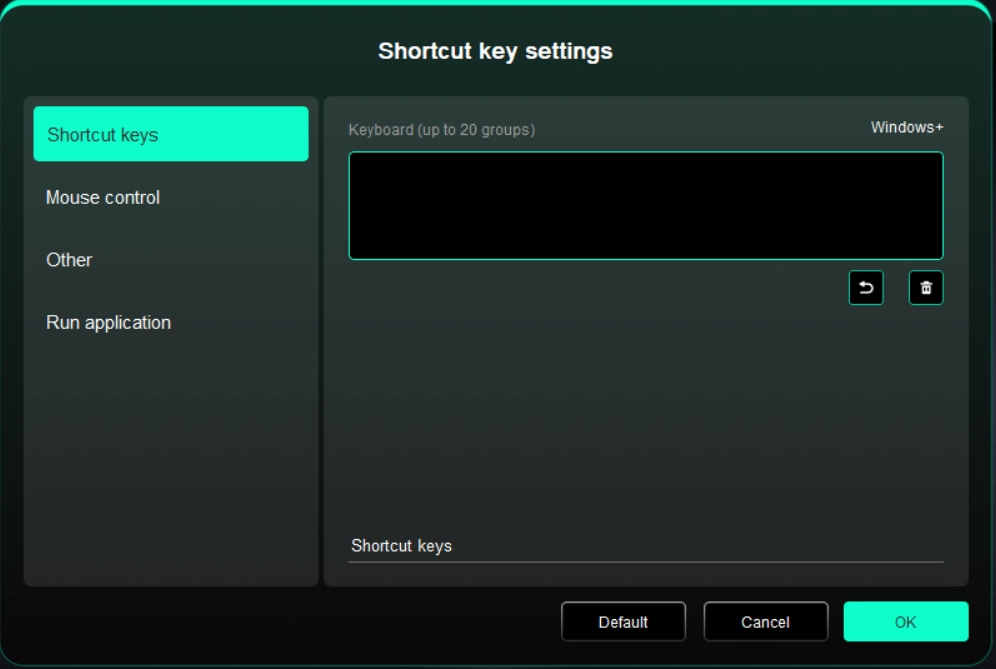 On the floating menu, click any shortcut key to configure its function. You can set it as a Shortcut Key, Others, or Execute Application.
