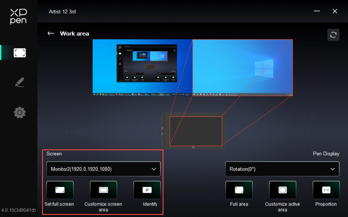 3. Screen Ratio: Match the drawing display's work area proportionally to the entire display area of the selected monitor.