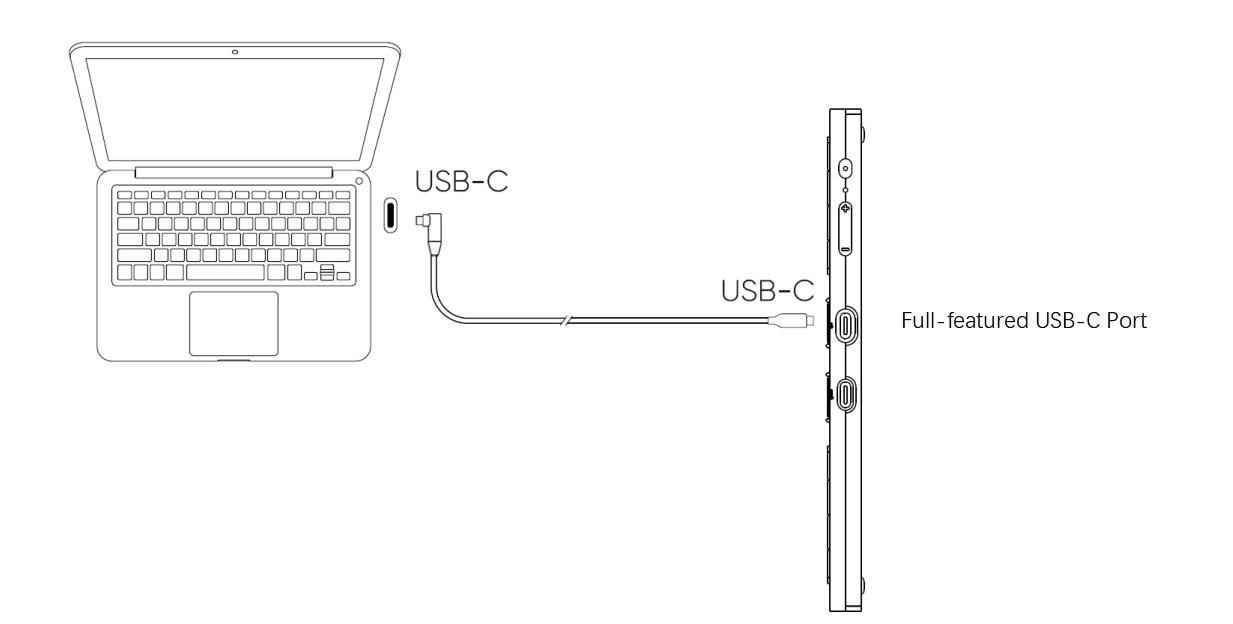 2. Insert one end of the USB-C to USB-C cable into the full-featured USB-C port on the drawing display;