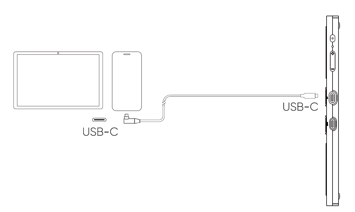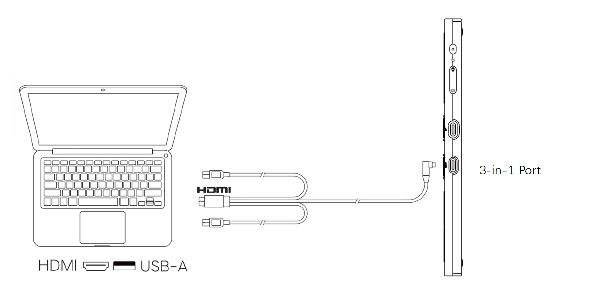 4. If the mobile device does not supply sufficient power, please use the 3-in-1 cable to connect the power adapter to the 3-in-1 port labeled on the drawing display.