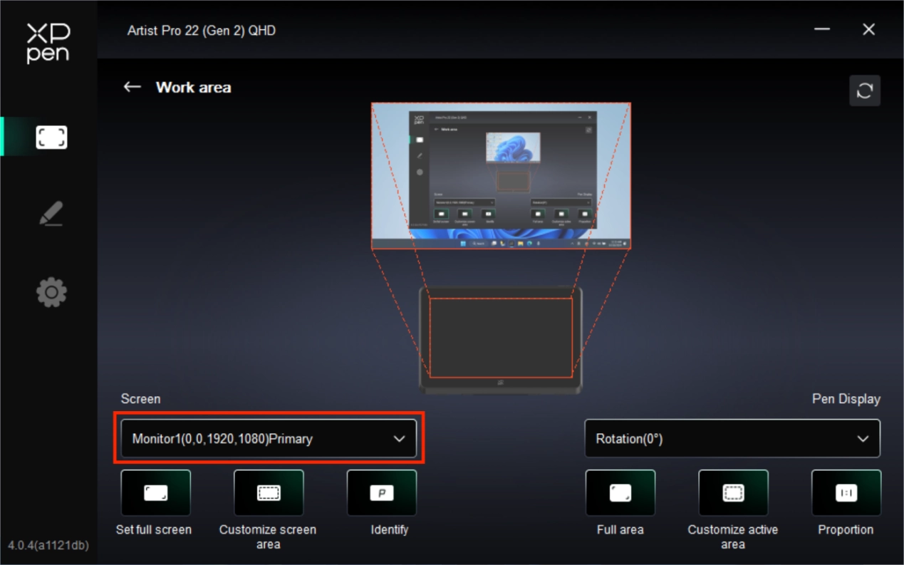 b) If multiple monitors are used in extend mode, go to monitor tabs to select one of the monitors that the work area of the device will be mapped to.