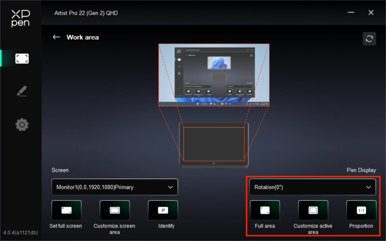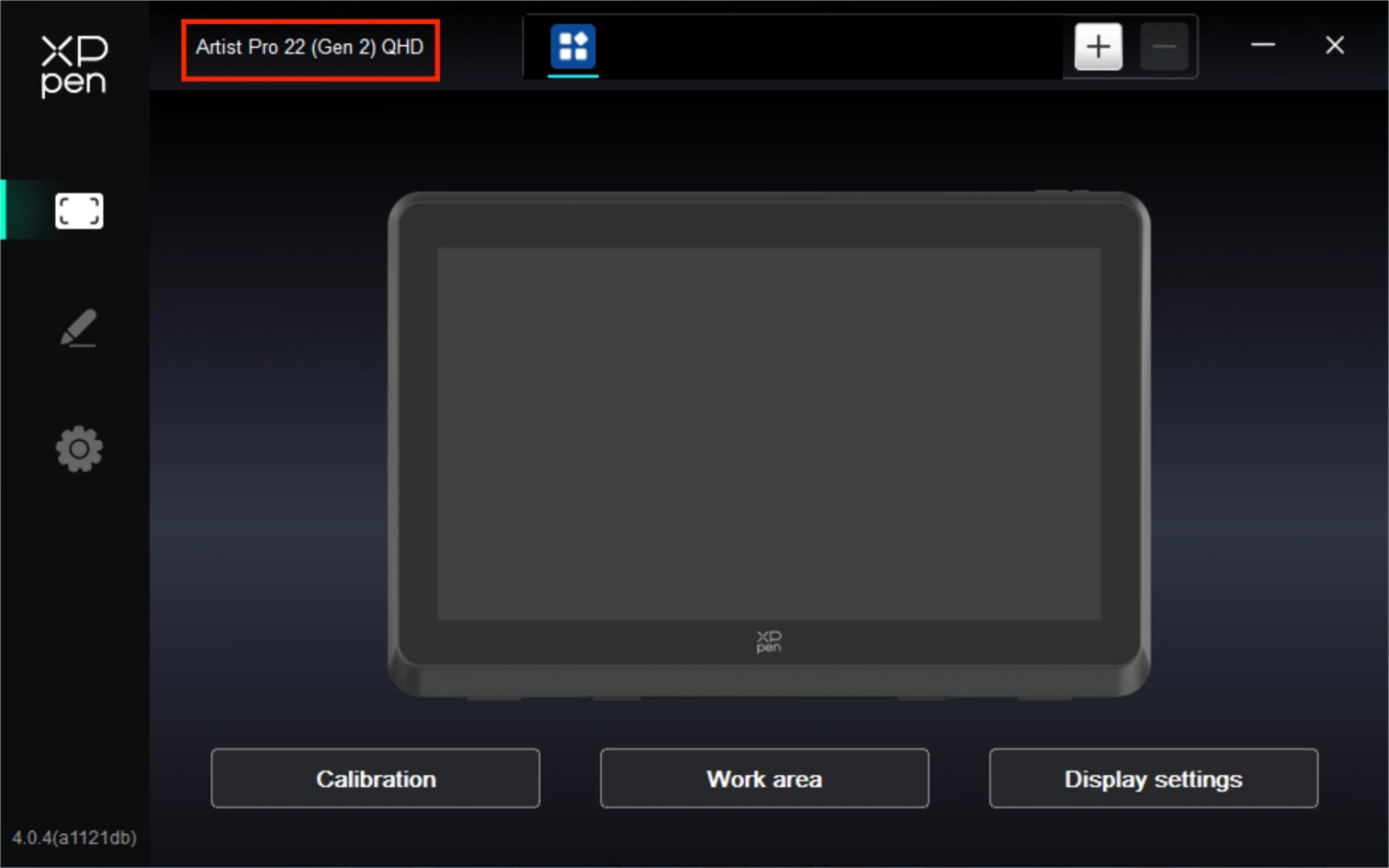 Click the icons on the left menu bar to switch between drive functions. From top to bottom, the options are Device Settings, Pen Settings, and Drive Settings.