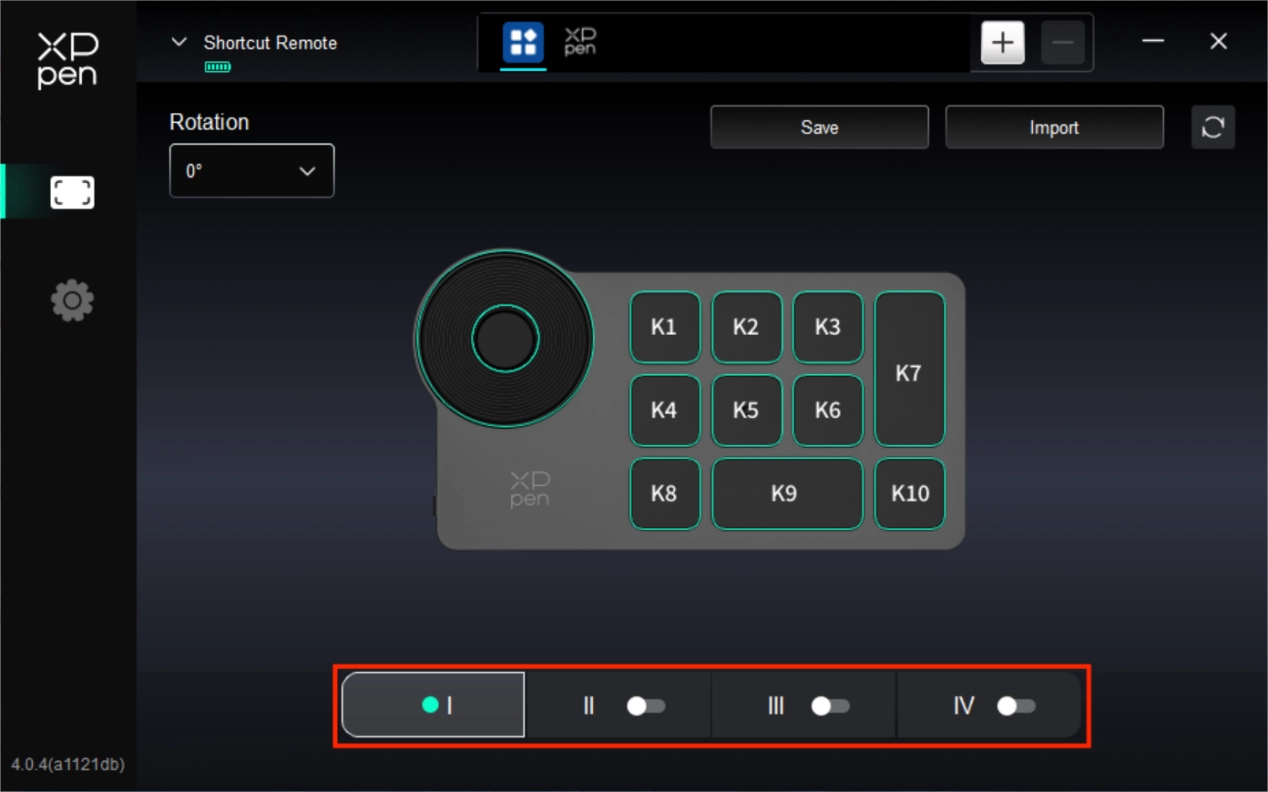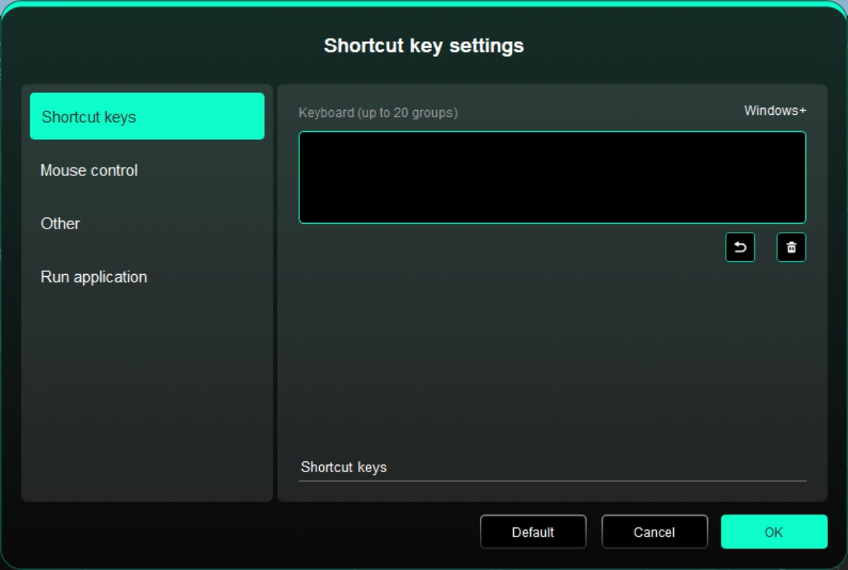 The driver provides four groups of shortcut keys. The first group of shortcut keys is used by default (cannot be closed). Each group of keys can customize different functions. After enabling, you can switch between the opened groups through "key group switching" (the default is K1 key, which can be customized as other keys).