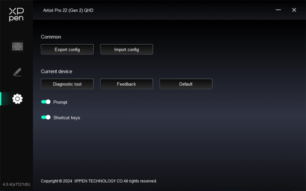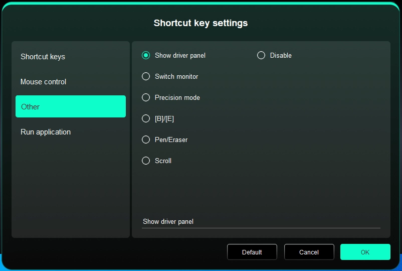 The driver Settings of the wireless shortcut keyboard are the same as those of the drawing display, please refer to "Product Settings ->Driver Function Settings-> Drawing Display -> Driver Settings" .