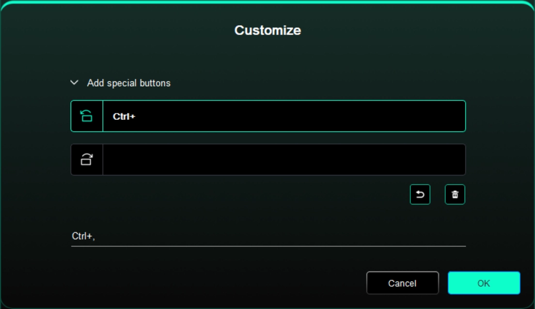 Click on the position of the roller on the image, select "Customize" from the preset function drop-down menu, and customize the clockwise and counterclockwise functions of the roller by entering the desired keys or combination keys on the keyboard.