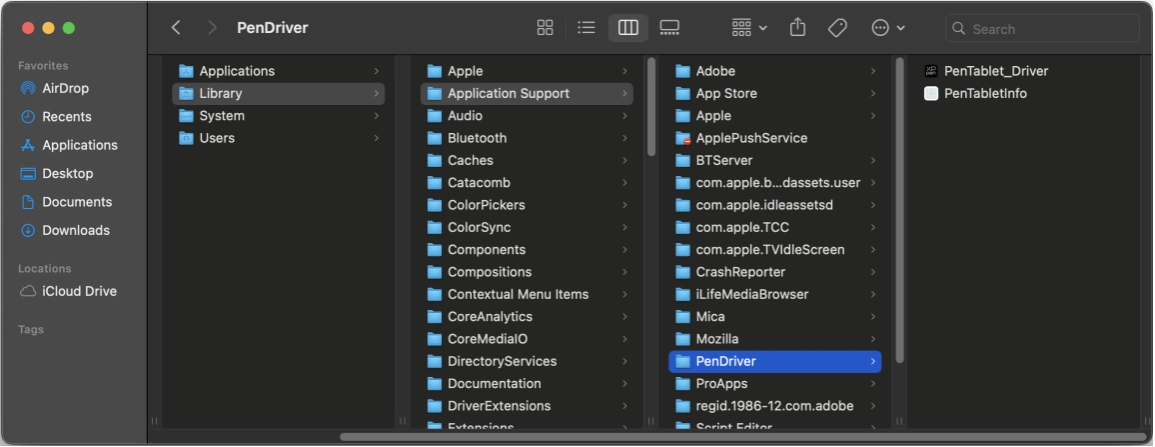 If there is no PenTablet_Driver on the list, go to resource Library -> Application Support -> PenDriver to add the driver manually.