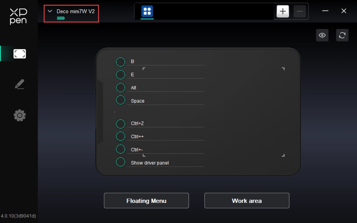 When the stylus is within the work area, it will be automatically recognized and added to the driver.
