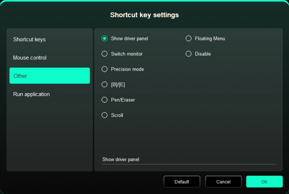 The shortcut keys and wheel on the drawing tablet are temporarily unavailable. The driver settings are temporarily unavailable, so the mapping area cannot be customized.