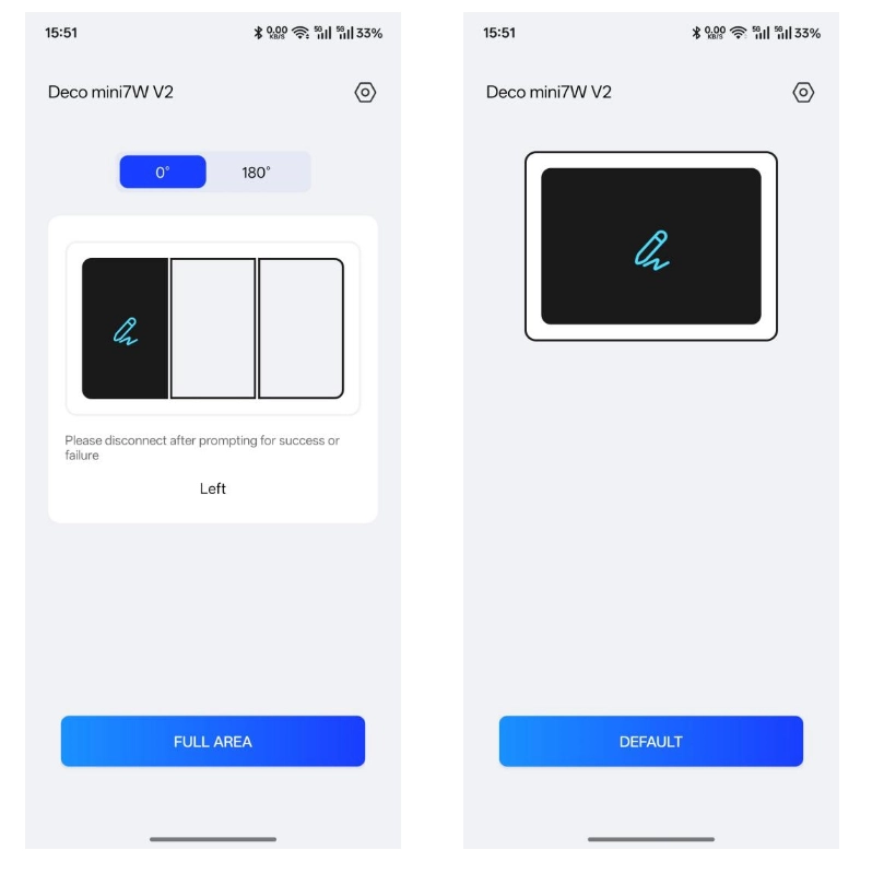 3) Tap "FULL AREA" to switch the drawing area to the full area from the left area. Tap "DEFAULT" to restore the drawing area to the left area.